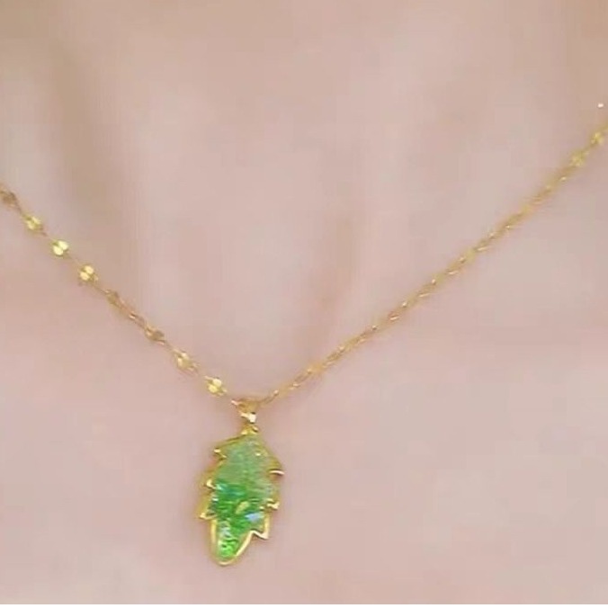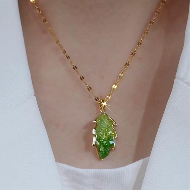 Product information:Treatment Process: Diamond Color: green Applicable population: Female Chain style: water wave chain Material: titanium steel Shape: Leaves