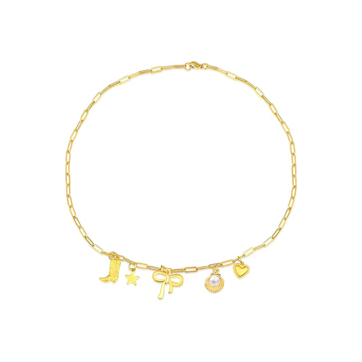Product information:Treatment Process: Electroplating Color: Gold Applicable people: Unisex Material: Copper Shape: Bow Popular elements: Pearl, Shell Perimeter: 41cm (inclusive)-50cm (inclusive)