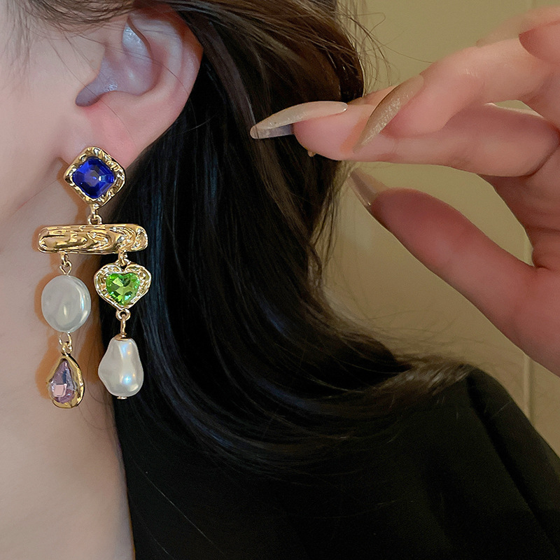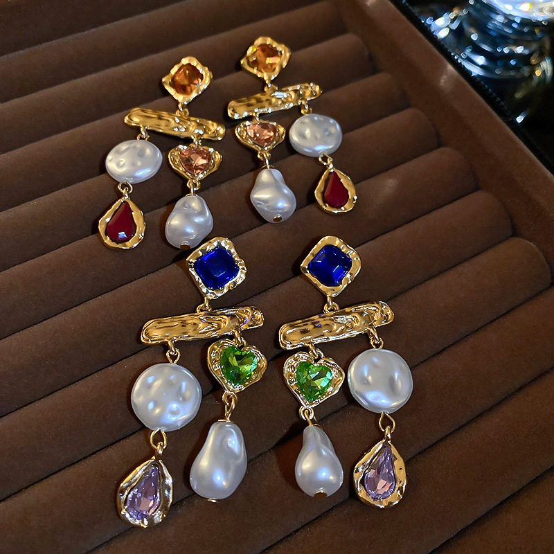 Product information:Color: Silver Needle-blue rhinestone pearl earring drops, Silver Needle-champagne rhinestone pearl earring drops Applicable population: Female Material: Alloy Shape: drop shape Popular elements: water droplets Style: Retro