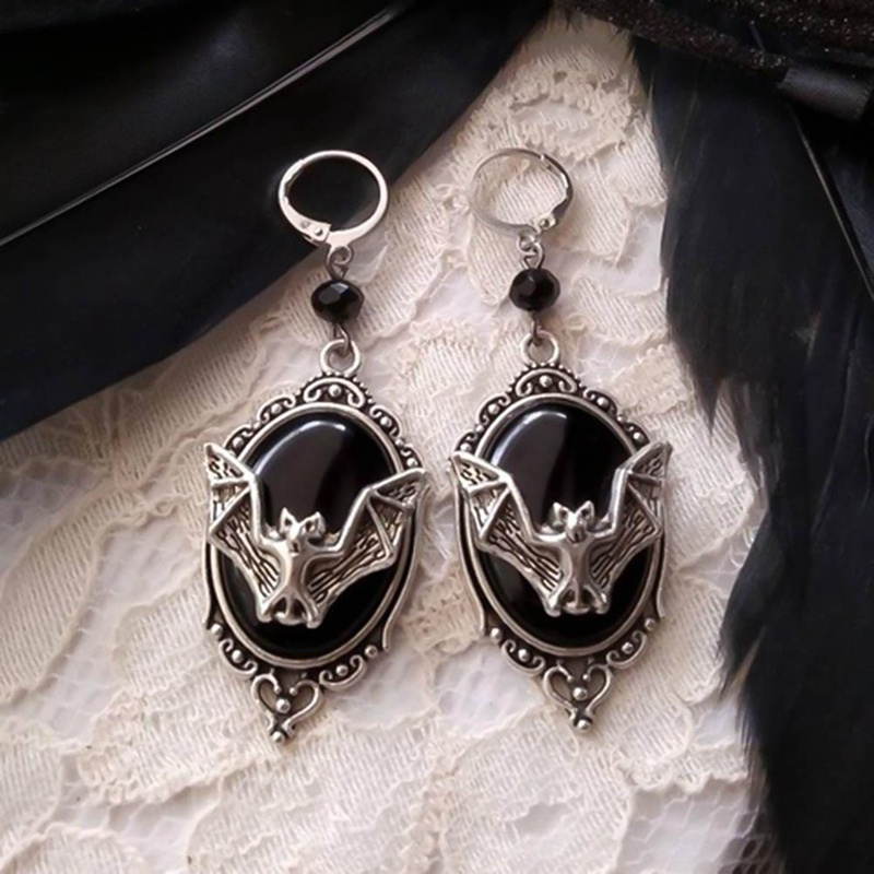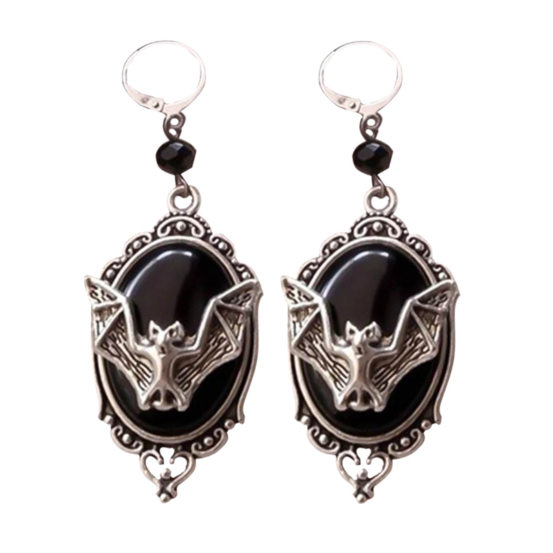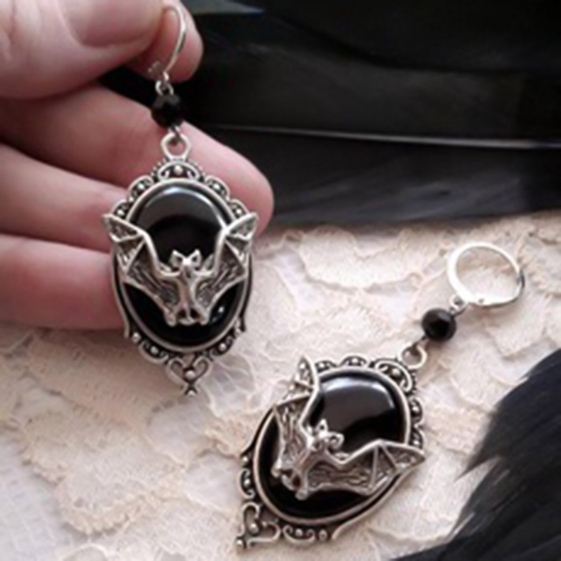 Personality animal bat black gem Earrings