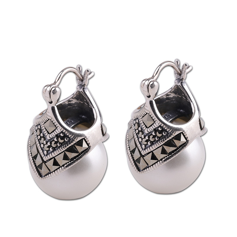 Material: SilverStyle: VintageModeling: GeometricTreatment process: Micro inlayPacking: BulkMosaic material: Sterling silver inlaid with gemsColor: Bead ear bucklePurity: 925 silver