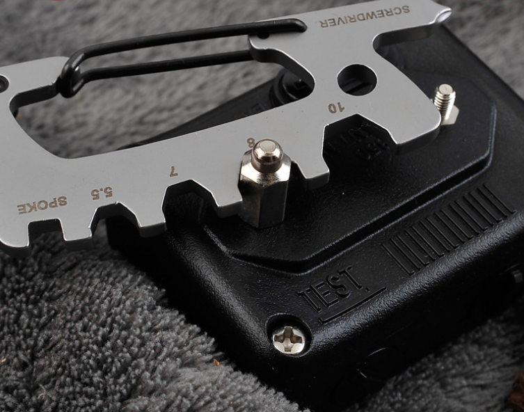 Function description: key ring, bottle opener, cross screwdriver, slotted screwdriver, wire cutting, carabiner, 5.5mm/7mm/8mm/10mm hex wrench
