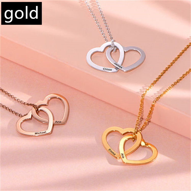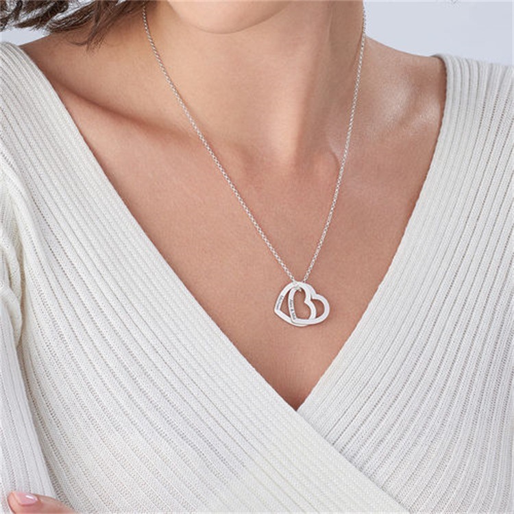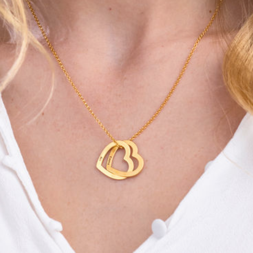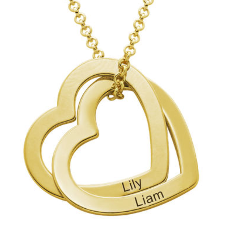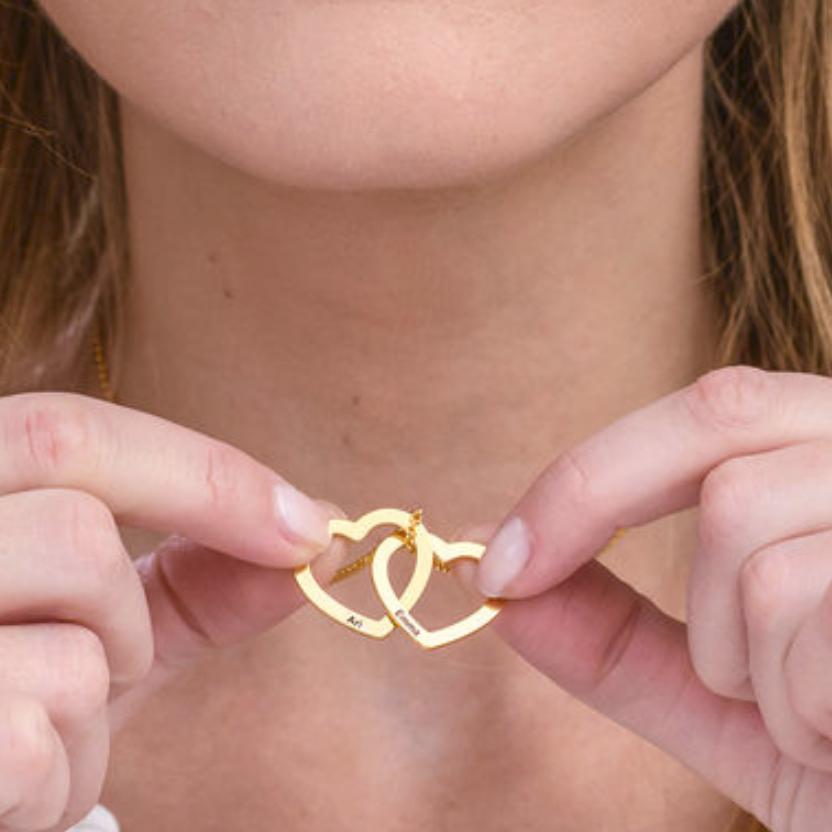 A beautiful necklace to celebrate love or family, this stunning design features a pair of interlocked heart-shaped pendants, each with a single inscription of your choice.