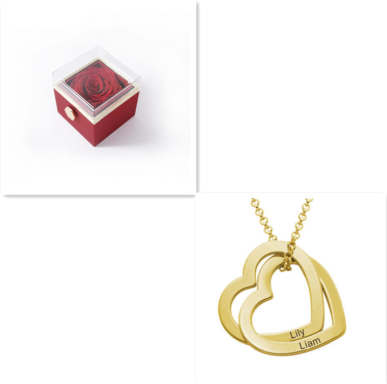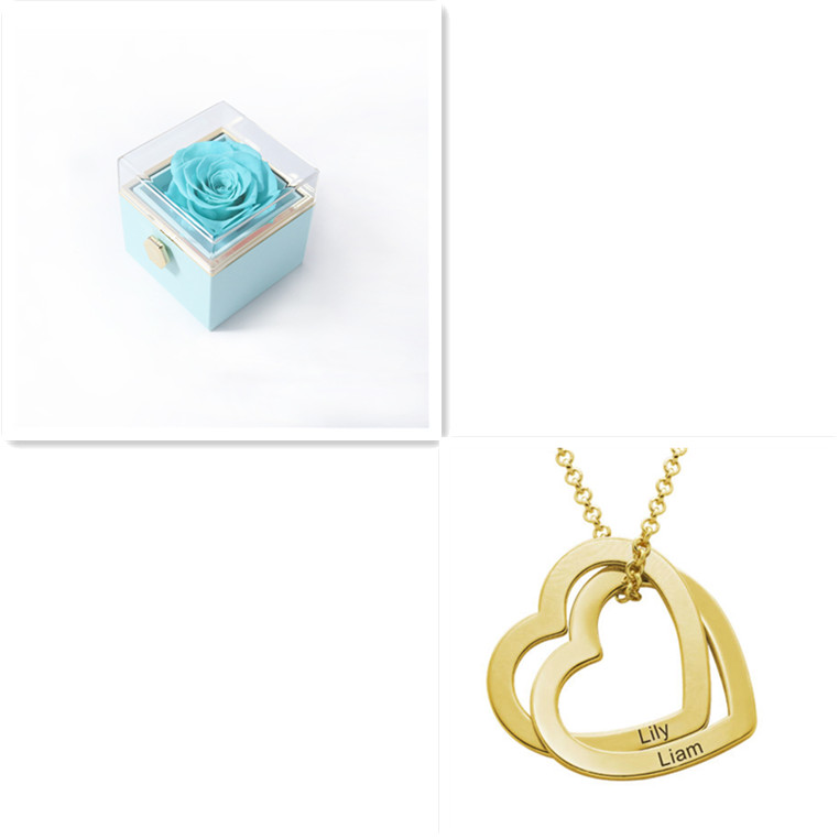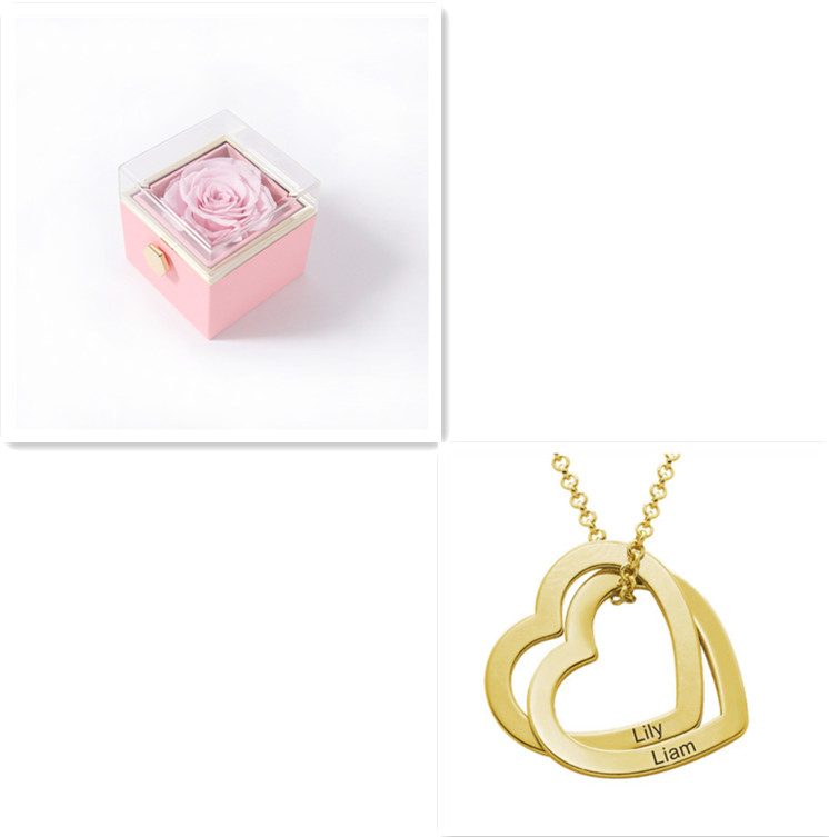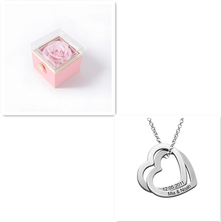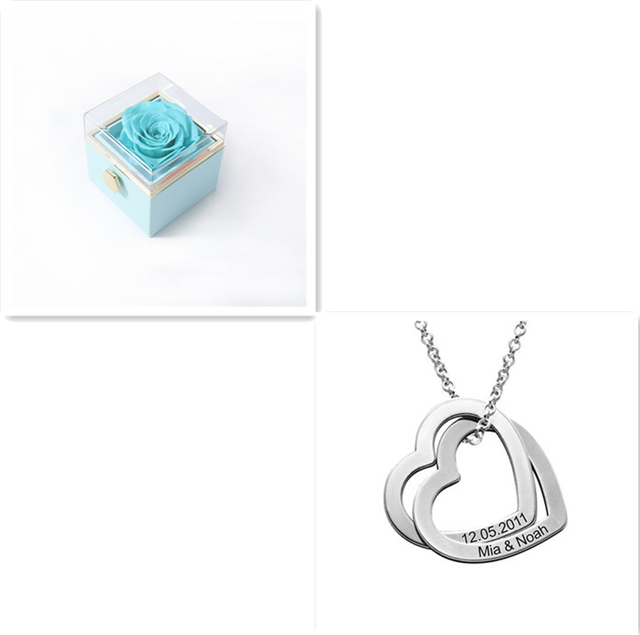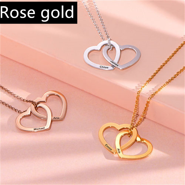 A beautiful necklace to celebrate love or family, this stunning design features a pair of interlocked heart-shaped pendants, each with a single inscription of your choice.