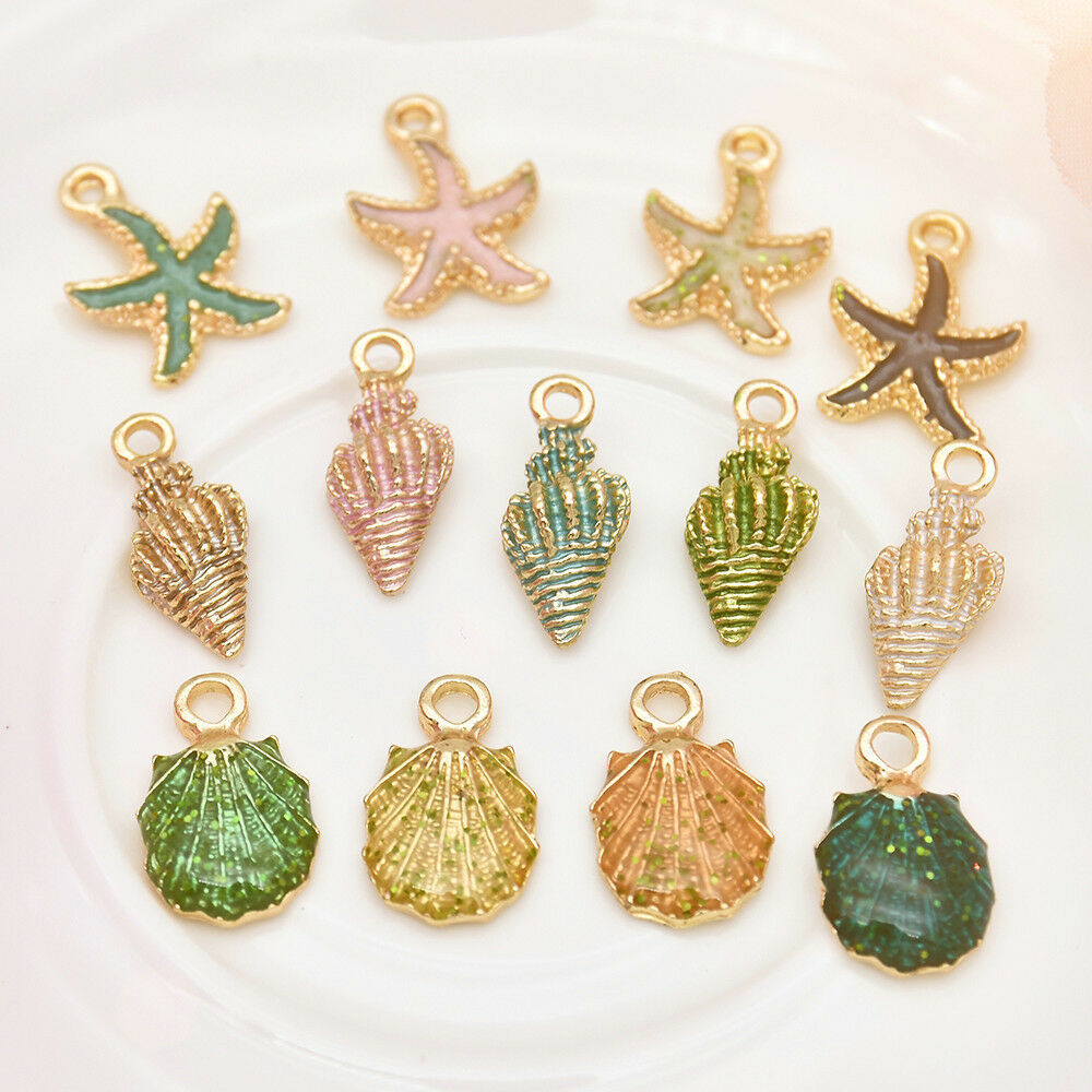 Treatment process: dripping oilConch size: 9*19mmStarfish size: 13*17mmSeashell size: 12*18mmMaterial: alloy + dripping oilQuantity: 13 pieces in a packWeight: 16g