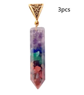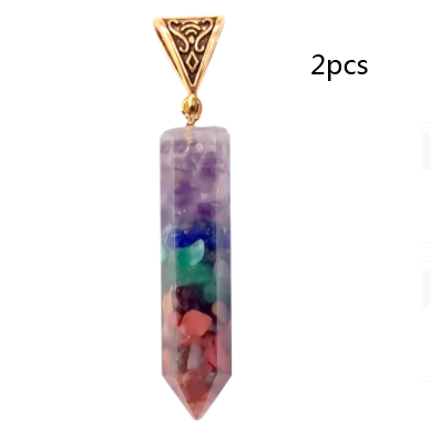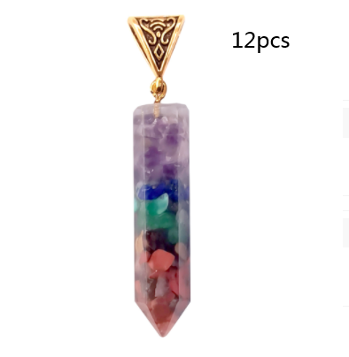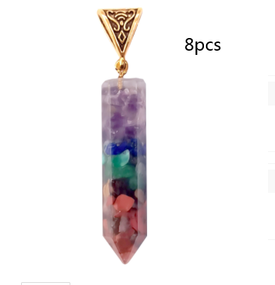Seven Chakra Natural Crushed Stone Hexagon Column Necklace Aura Pendant