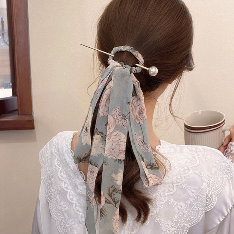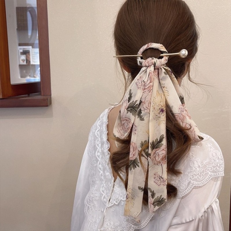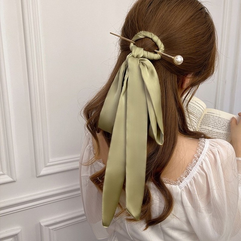 An elegant hair accessory featuring a soft loop design with a flowing satin ribbon and a pin adorned with a pearl, giving your hairstyle a refined and feminine touch. It combines simplicity and luxury in one piece, making it perfect for special occasions as well as chic everyday looks.