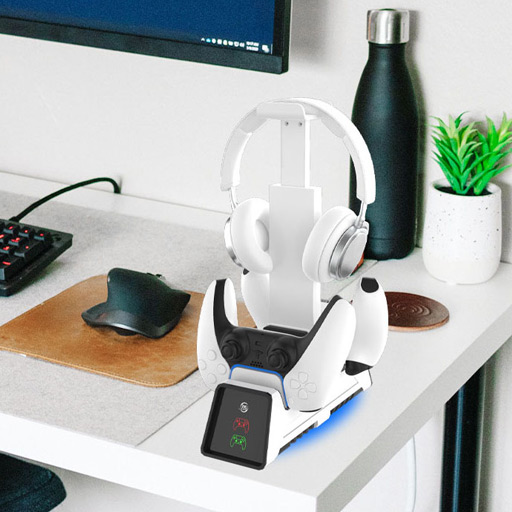 - شحن عصا التحكم الخاصة بأجهزة PS5/XBOX X/Nintendo Switch - منافذ متعددة من نوع Type-C عدد 2 و MicroUSB عدد 2 - ستاند للسماعات
