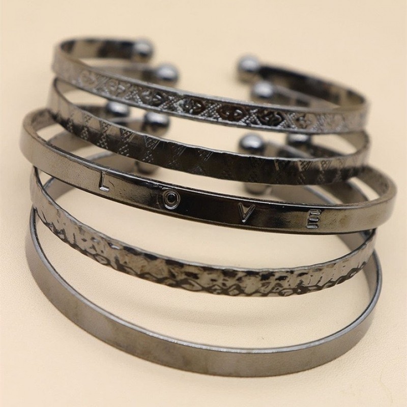 Curated Variety: The set includes six open-cuff bangles with unique detailing—ranging from the iconic "LOVE" inscription and geometric diamond patterns to hammered and sleek polished finishes.