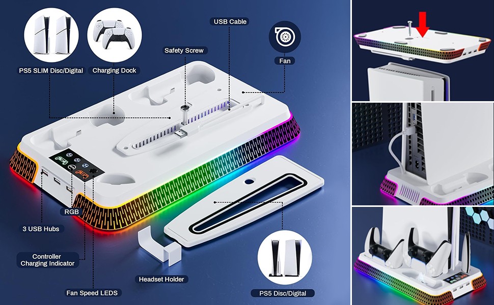 Vertical Stand with Multi-Functional Cooling Fan PS5 Pro / PS5 / PS5 Slim