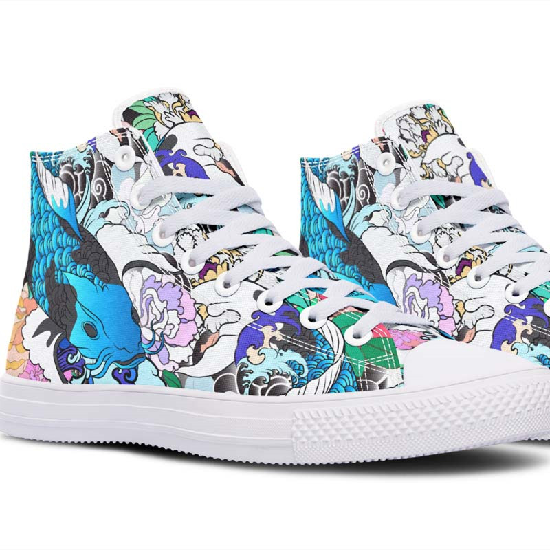 • Hand and custom printed high-tops