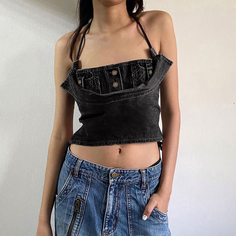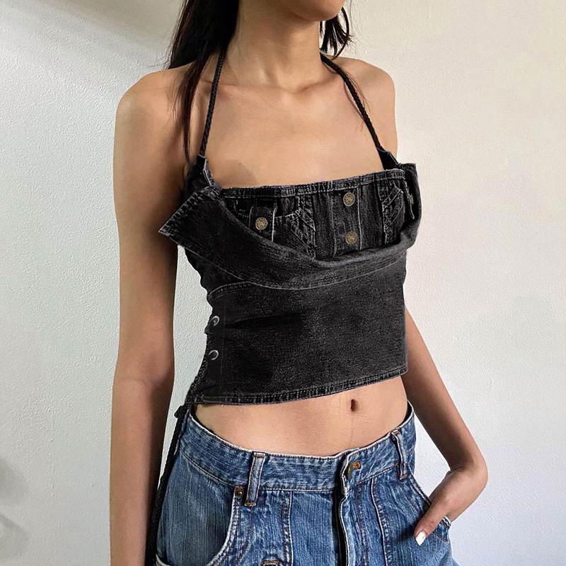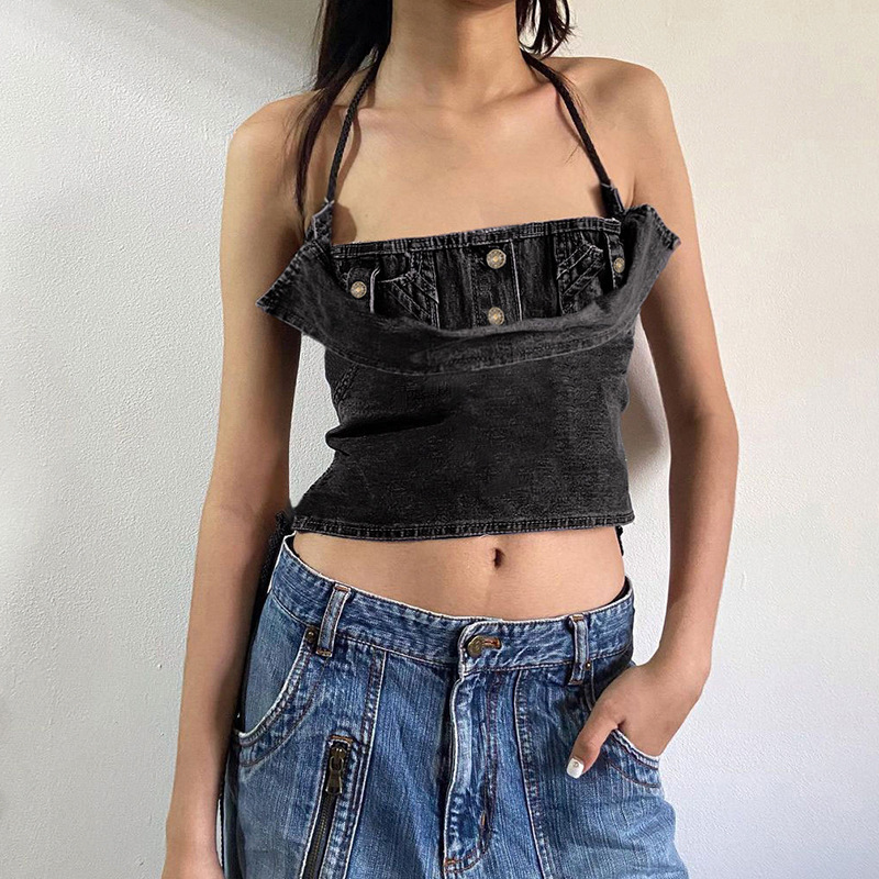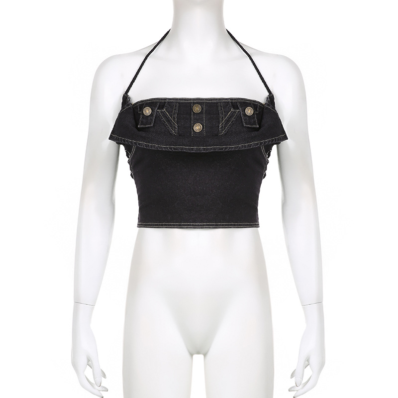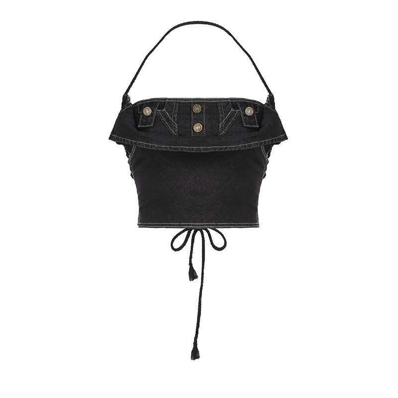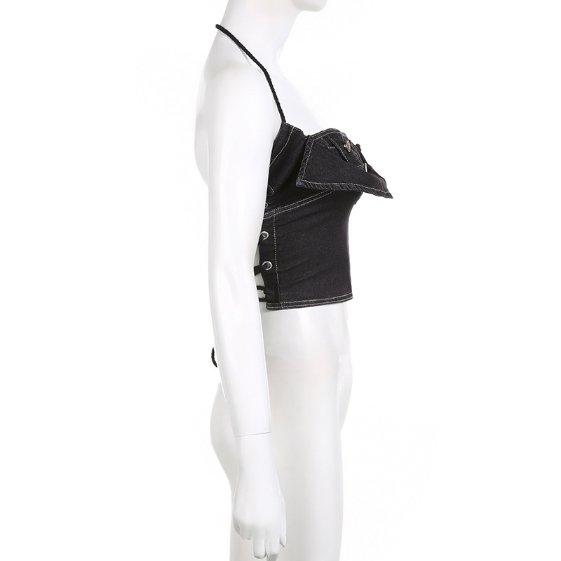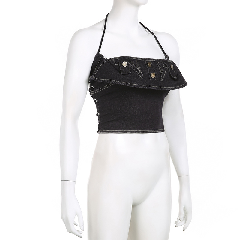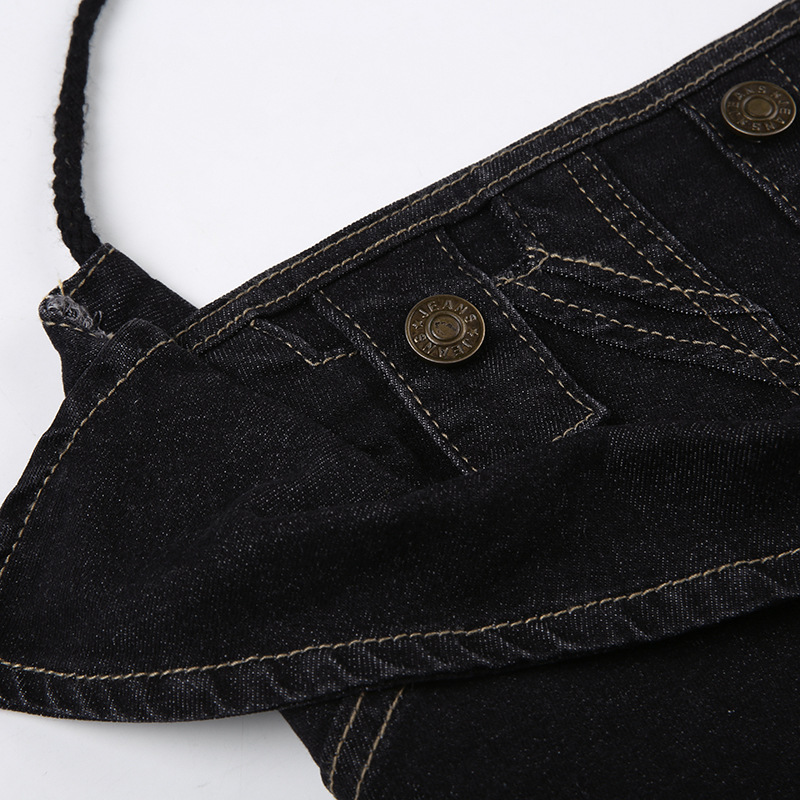 Product information: Color: Black Size: S,M,L Style: slim fit Fabric name: denim Main fabric composition: Cotton Style: sweet and spicy Shoulder strap style: backless shoulder strap