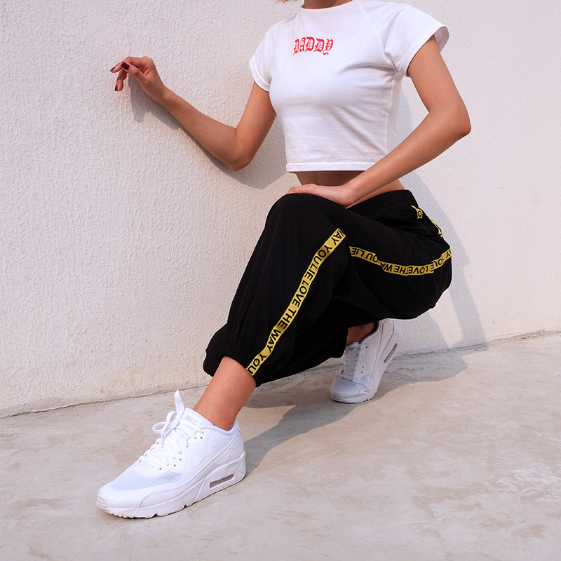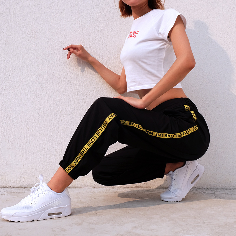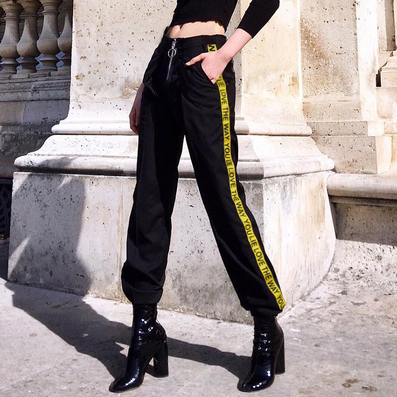 summer foreign trade original single women's new high waist elastic casual pants ribbon stitching contrast color beam pants
