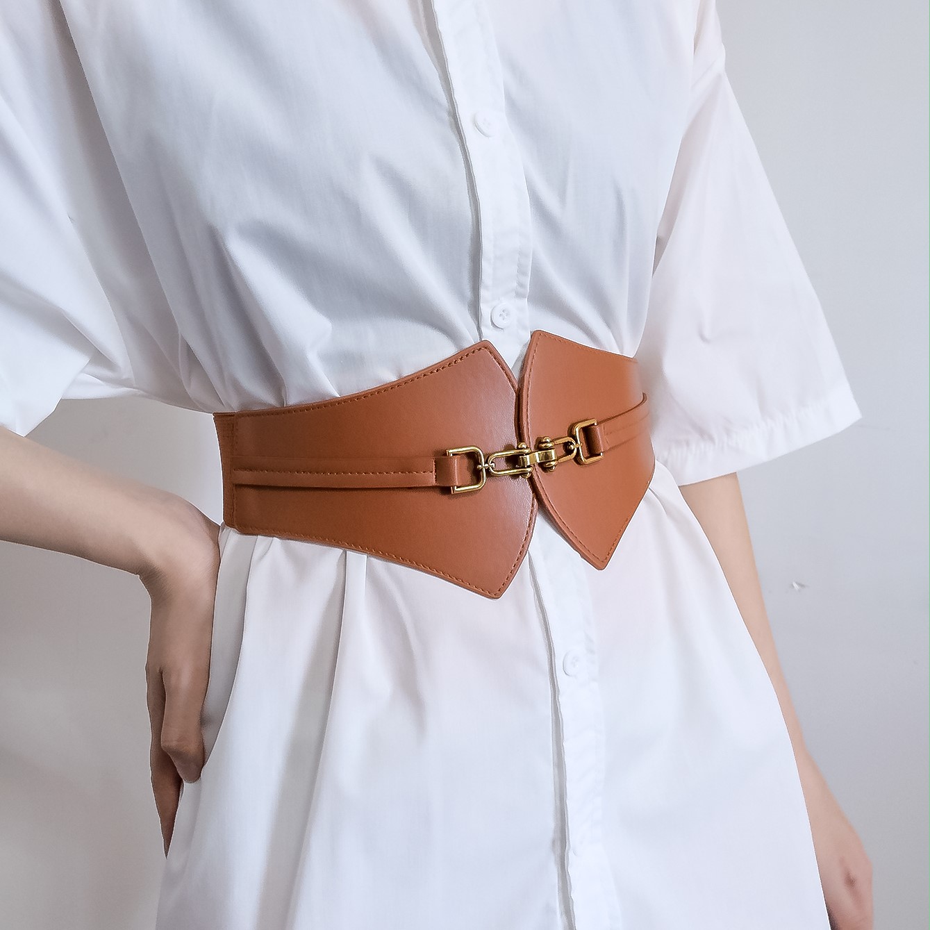 Waist seal female waist decoration shirt dress with a sense of high-grade belly cover fan-shaped buckle high elastic network red