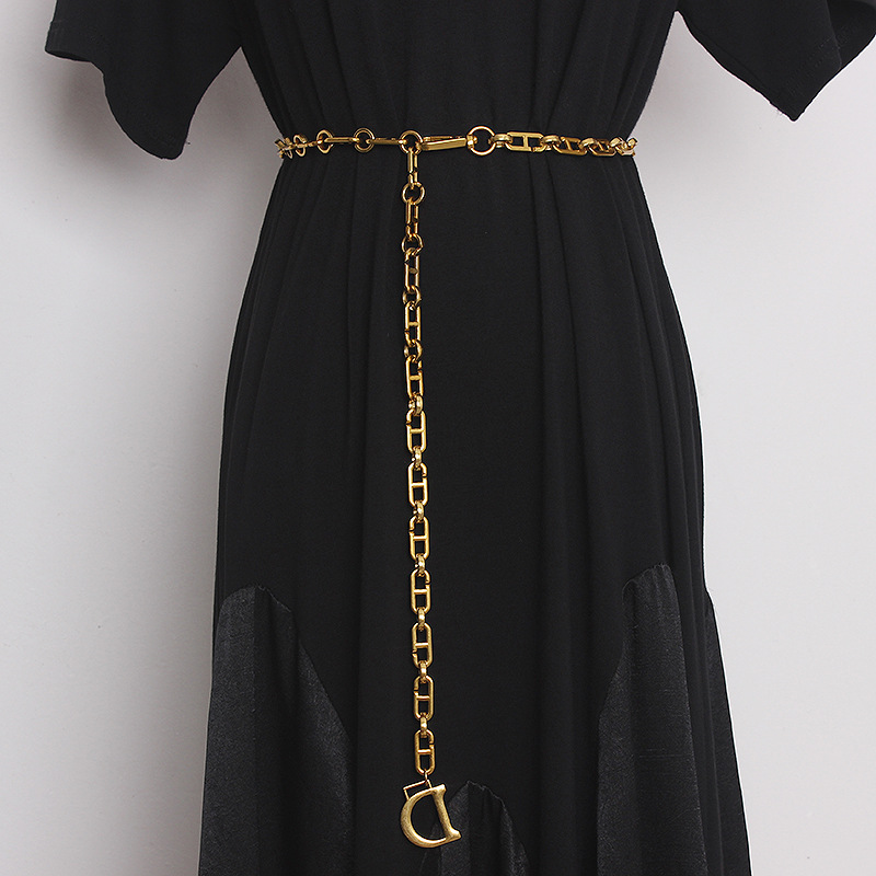 Color: antique goldMaterial: AlloySIZE: Waist circumference/can be adjusted freely, full length 100, width 1Color: ancient gold D pendant ancient gold waist chain