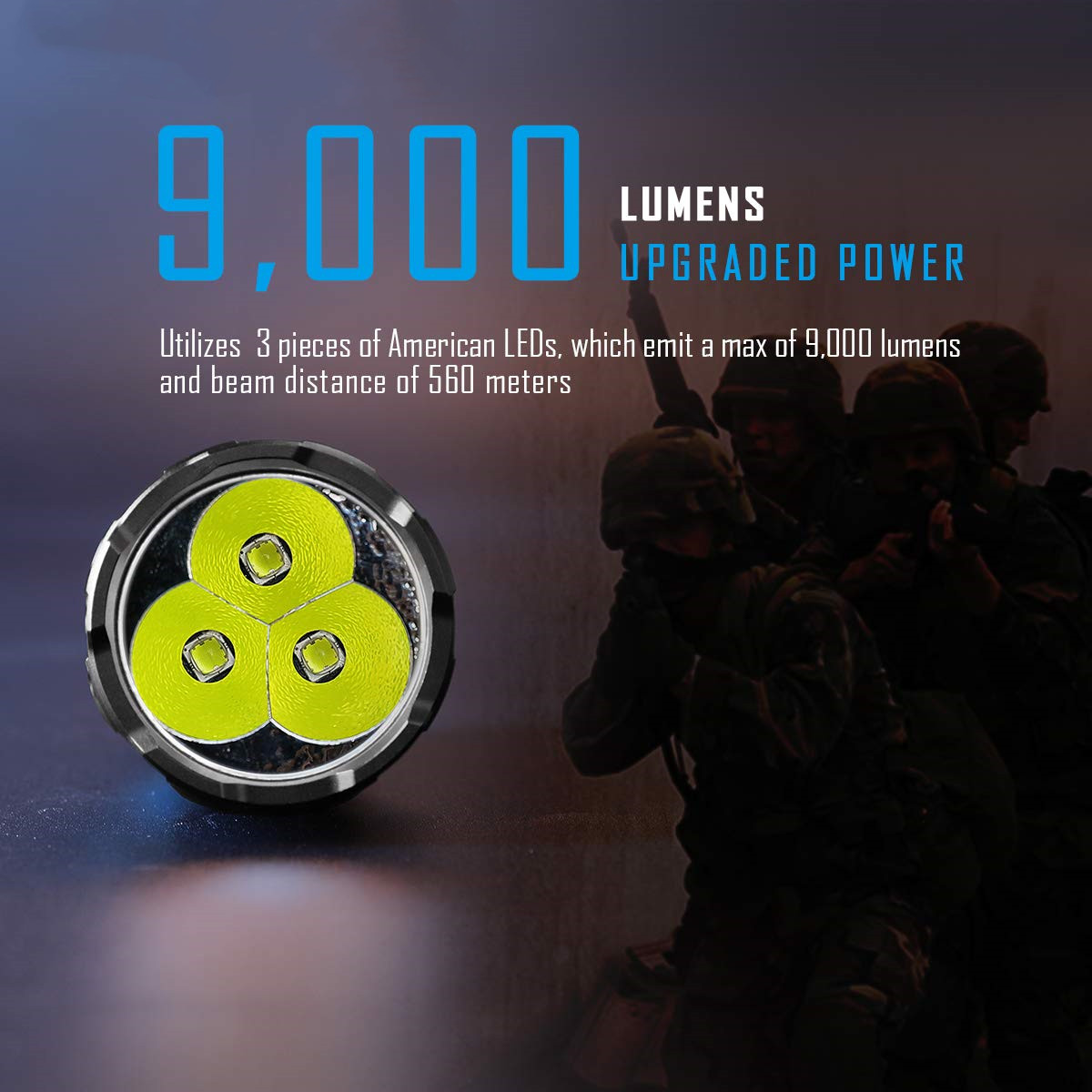 Using a single light source, the lifespan is 50,000 hours, and the maximum brightness output is 9,000 lumens.