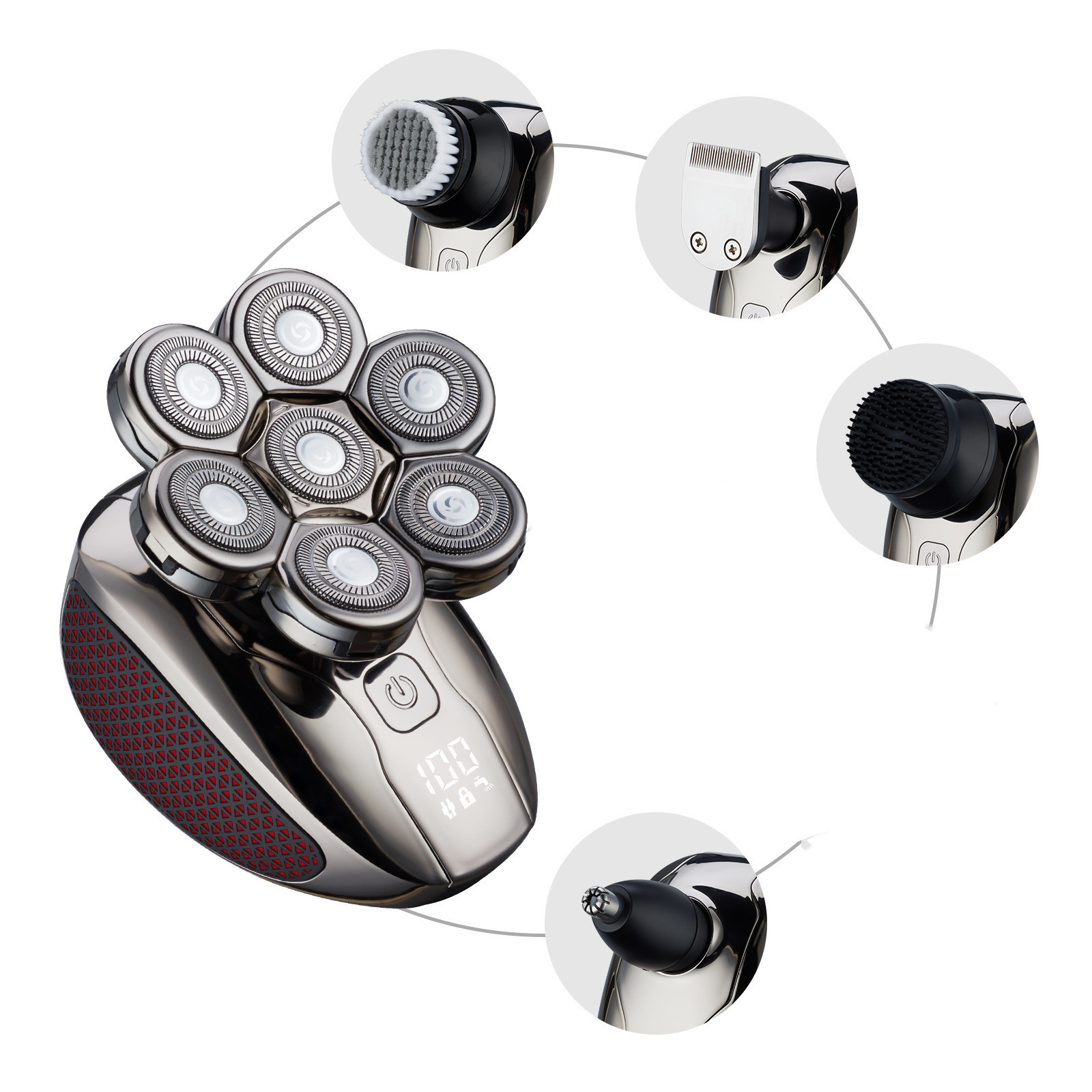 Optional accessories: nose hair, silicone brush, facial cleanser, razor, fine hair trimmer