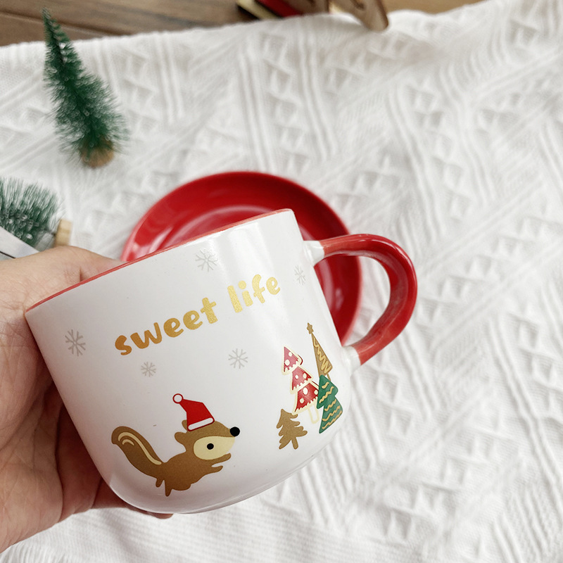Product information Material: potteryColor classification: Santa Claus, big elk, little elkStyle: American Packing list:Ceramic cup ×1 Plate *1