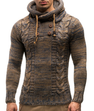 Men's Slim High Round Neck Sweater Long Sleeve Top