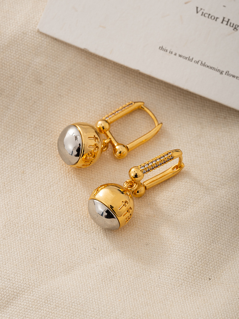 Product information:Treatment Process: ElectroplatingColor: E12890Applicable people: womenMaterial: CopperShape: U-shaped, geometricPopular elements: SphereStyle: ins styleSize: Approximately 2.9cm * 1.1cm