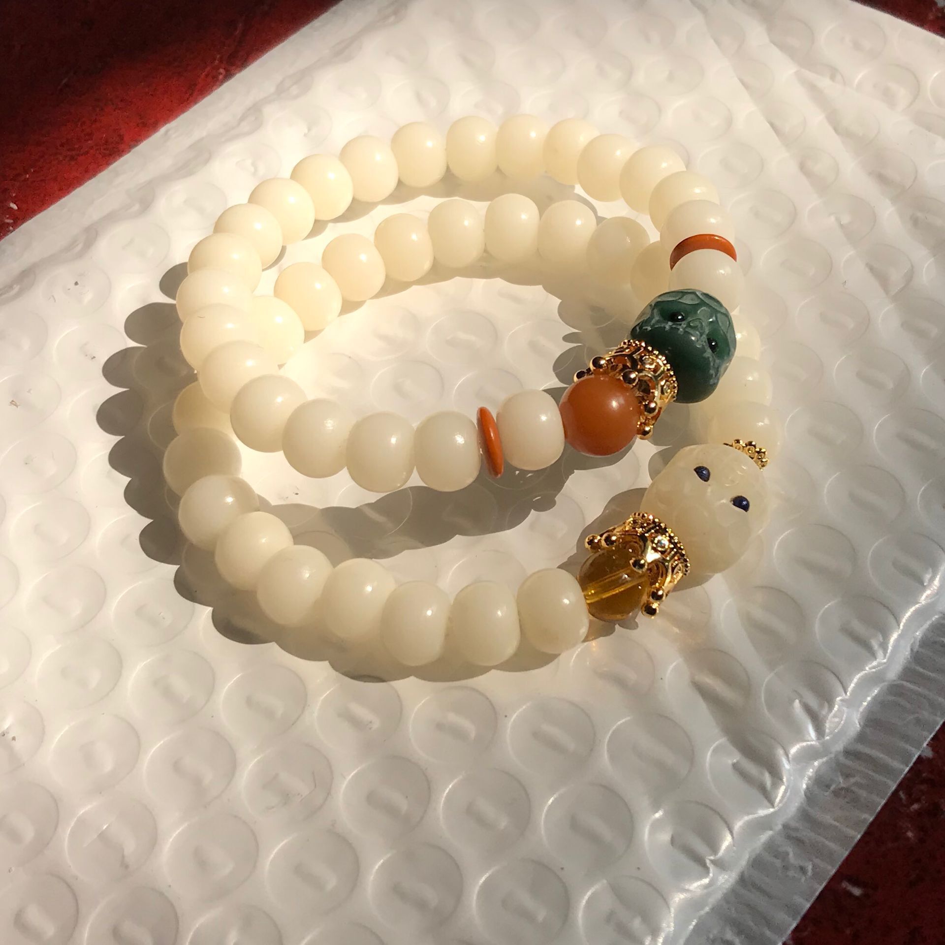 Dumb Bracelet White Jade Bodhi Single Circle Bracelet