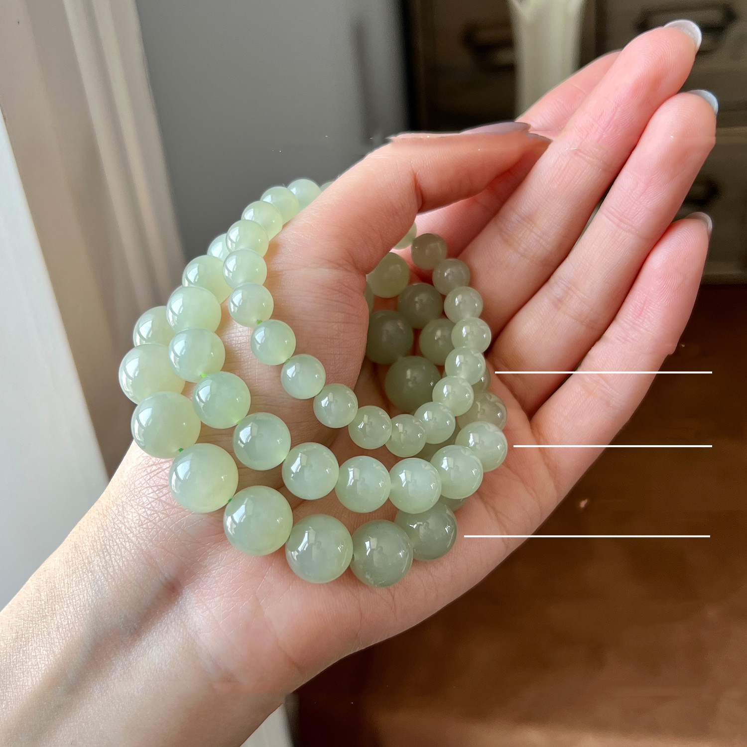 Product Information:Material: Hetian jadeApplicable gender: FemaleSize: 6mm ball - average size elastic rope 8mm ball - average size elastic rope