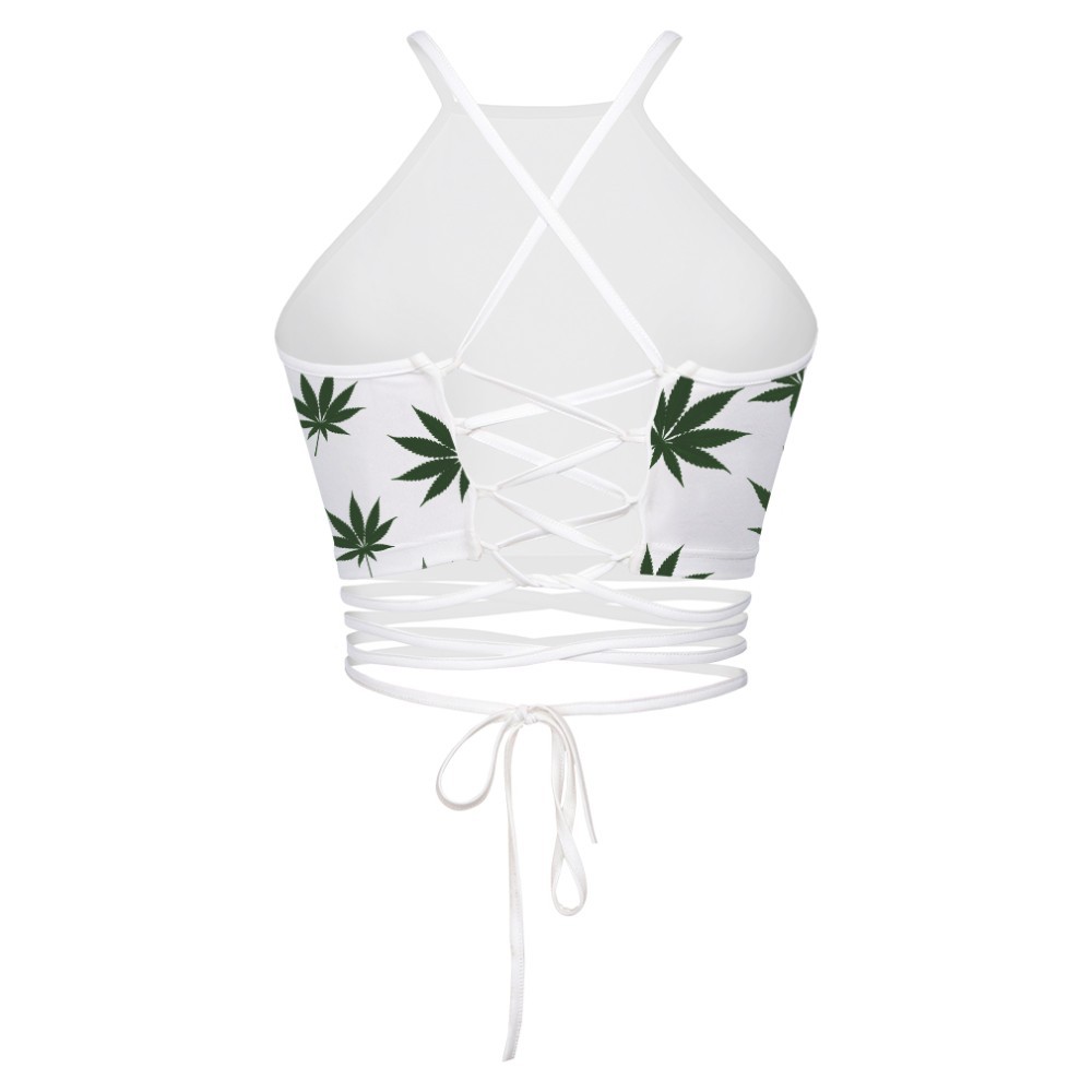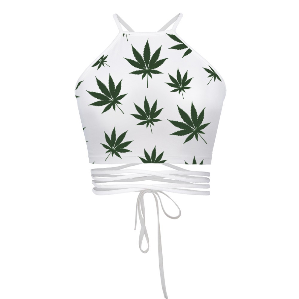 Leaf print strap vest Casual wild beach suit sexy tube top