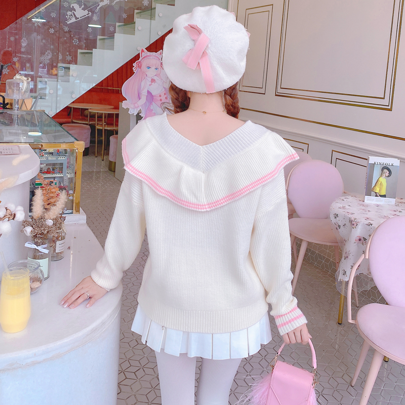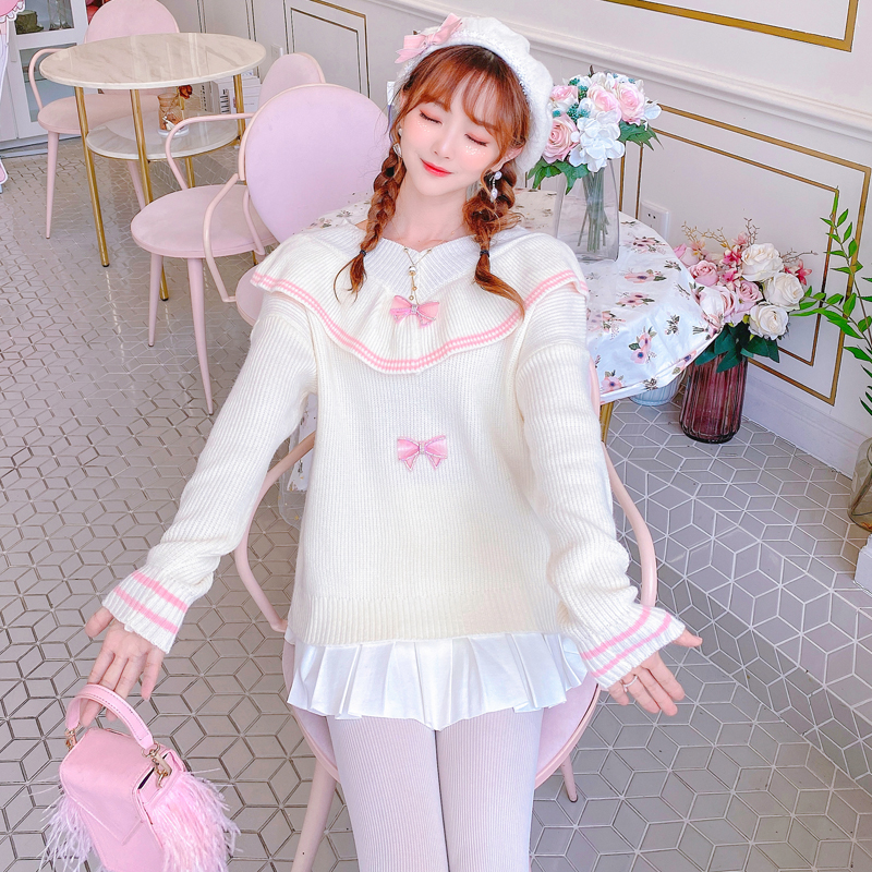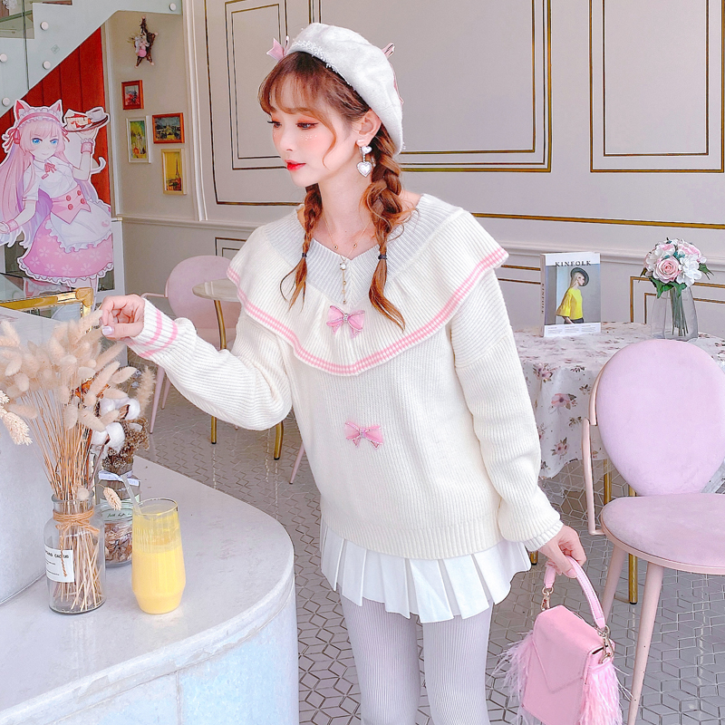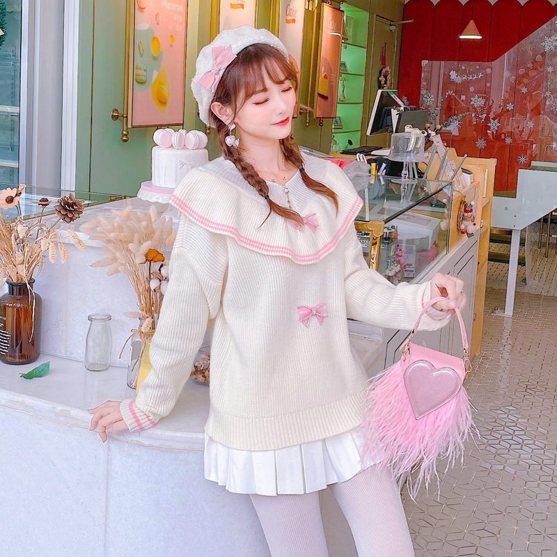 size: one sizePattern: bowStyle: sweetCollar: V-neckYarn thickness: thick woolColor classification: beigeSleeve type: conventionalSize information: