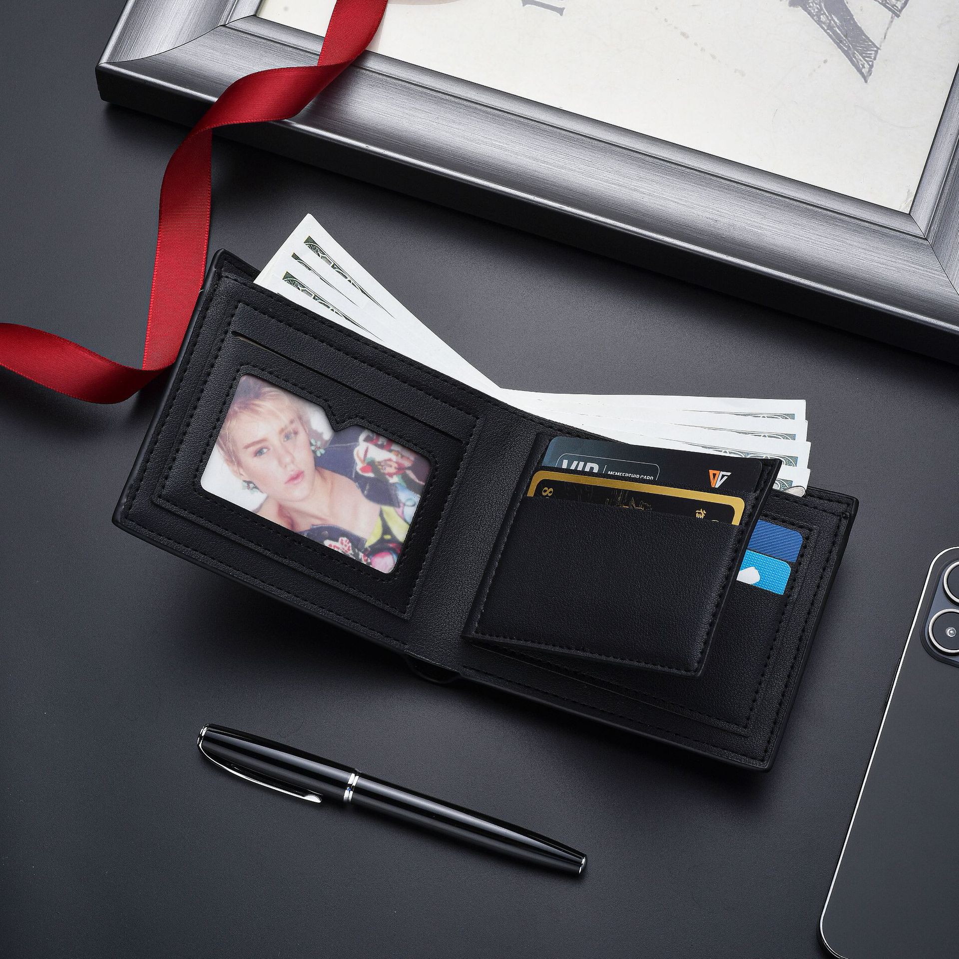 Dimensions: length 18.5cm, width 9.5cm, thickness 2cmMaterial: PU leatherNumber of wallet folds: 20%Cover opening method: covered typeStyle: CasualColor: black, dark coffee, light brown
