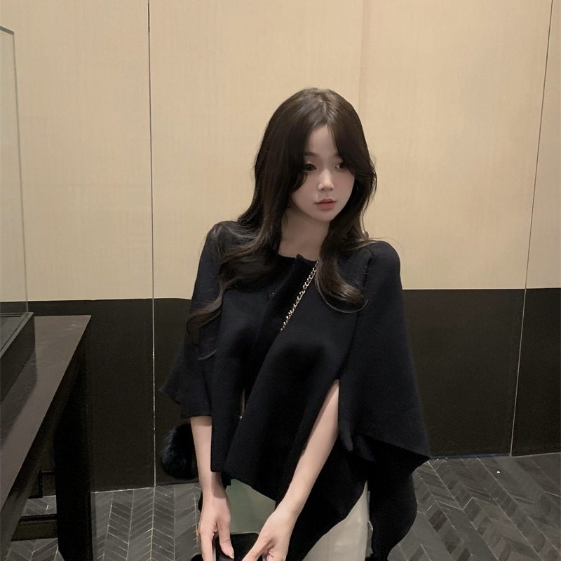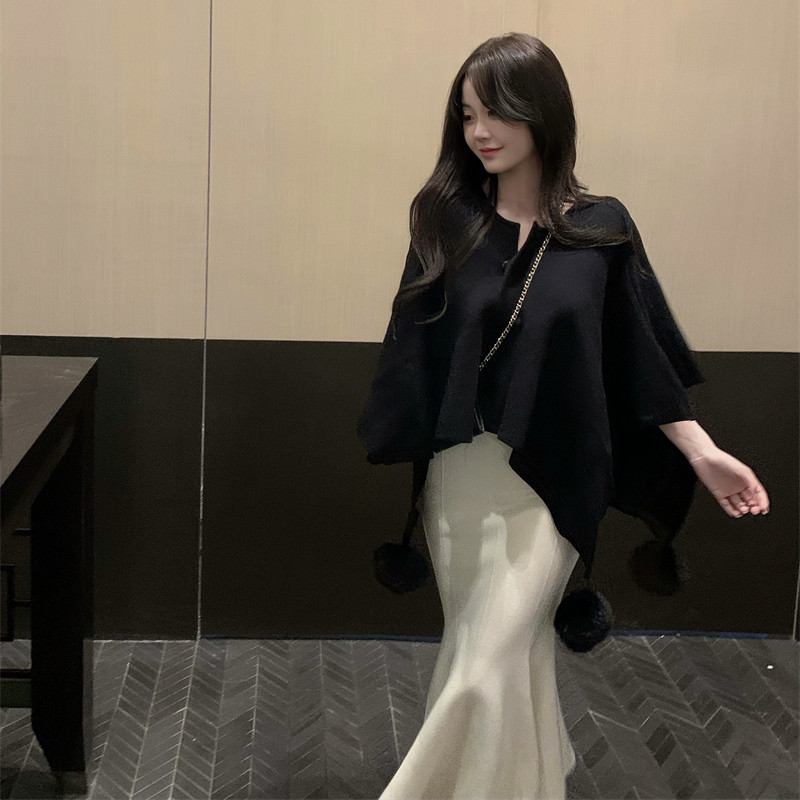 Colour:Apricot fishtail dress Black cape