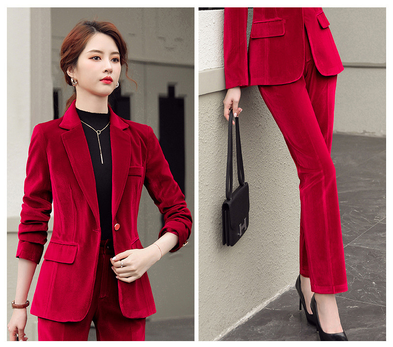 Color: red suit + pants, black suit + pants, blue suit + pants, red suit, black suit, blue suit