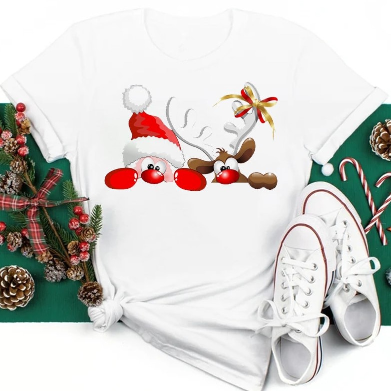 European And American Festival Cute Santa Claus And Deer Women T-shirt