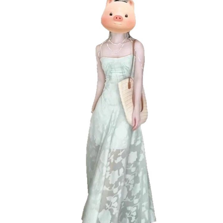 Product information: Color: green Waist type: high waist Size: XS,S,M,L,XL Popular elements: splicing Main fabric composition: Polyester (polyester fiber) Sleeve length: sleeveless Skirt Category: Dress