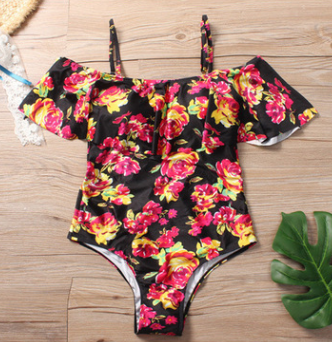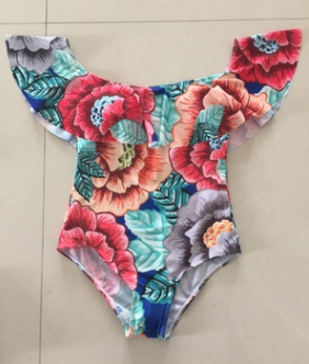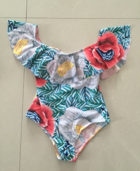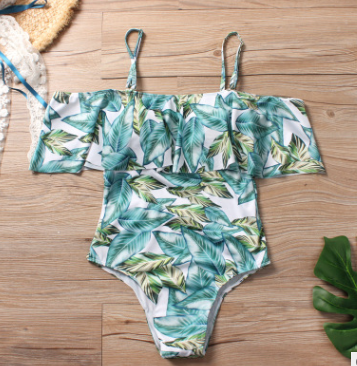 Europe and the United States a new fashion word shoulder lotus leaf Siamese multi-colored green leaf swimsuit bikini