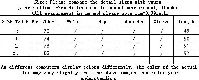 1. Asian sizes are 1 to 2 sizes smaller than European and American people. Choose the larger size if your size between two sizes. Please allow 2-3cm differences due to manual measurement.