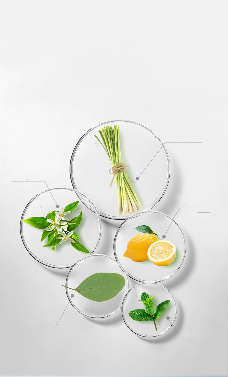 Core ingredients: citral, menthal, citronellone, linalool, nerol, tripene