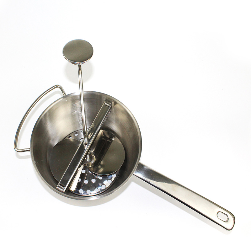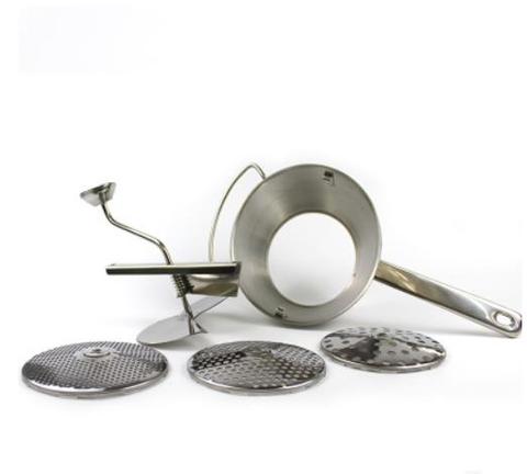 • ROTATING BLADE: It has a rotating blade attached to a handle that you turn to press food through the perforations. Prevents pulp, peels, and skin from entering.