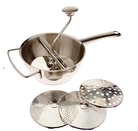 • VERSATILE: This food mill can be used to make homemade sauces, purees, soups, jams, mashed potatoes, baby food, and more!