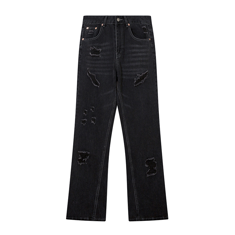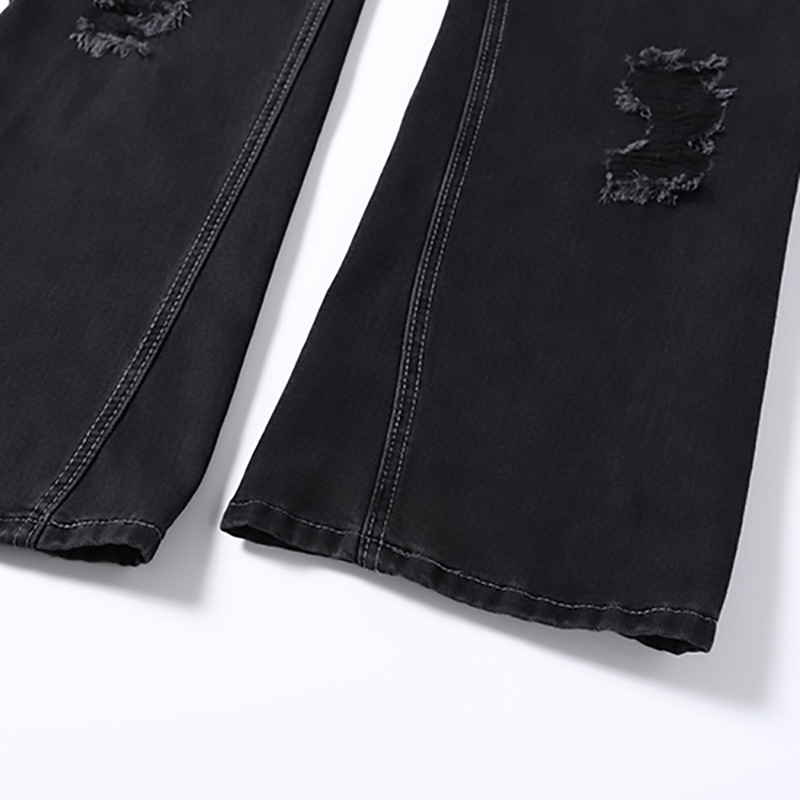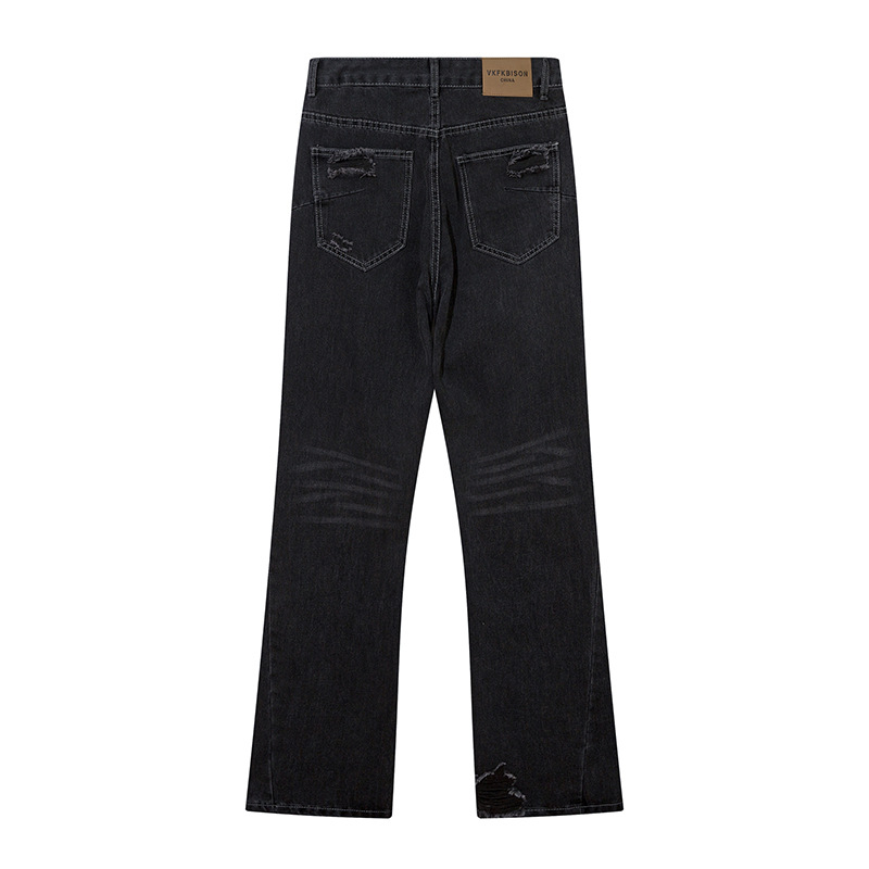 Washing Hole Denim Bootcut Trousers Men
