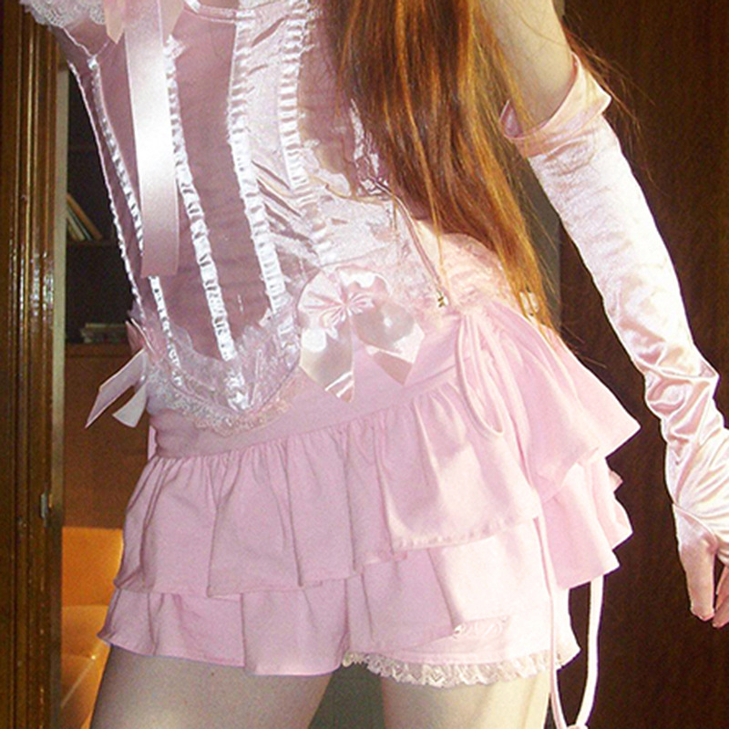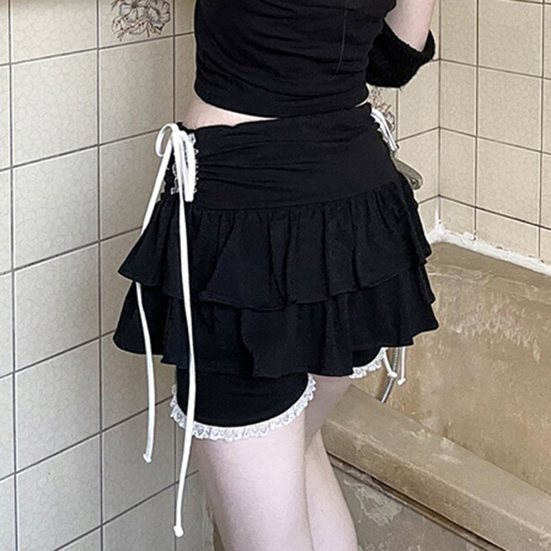 Sweet And Spicy Girl Pleated Tie Cake Skirt Trousers