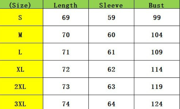 Size:S,M,L,XL,2XL,3XL unit:cm