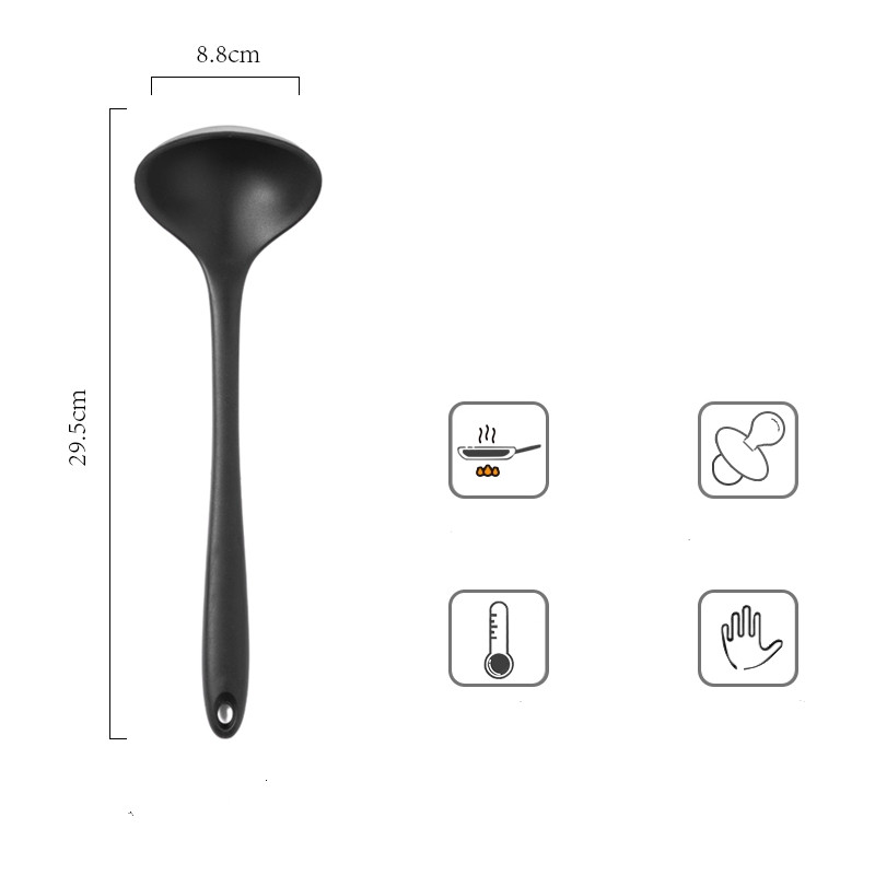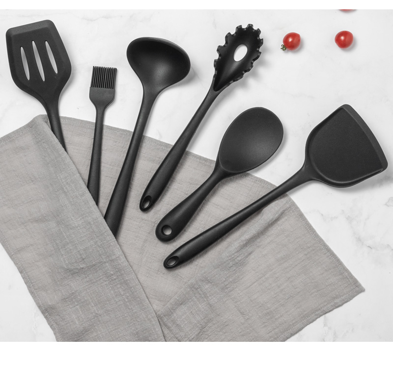 Color classification: oil brush (black), rice spoon (black), colander (black), noodle fishing (black), frying spatula (black), spatula (black), soup spoon (black), spatula (black), food tongs (black), egg whisk ( black)