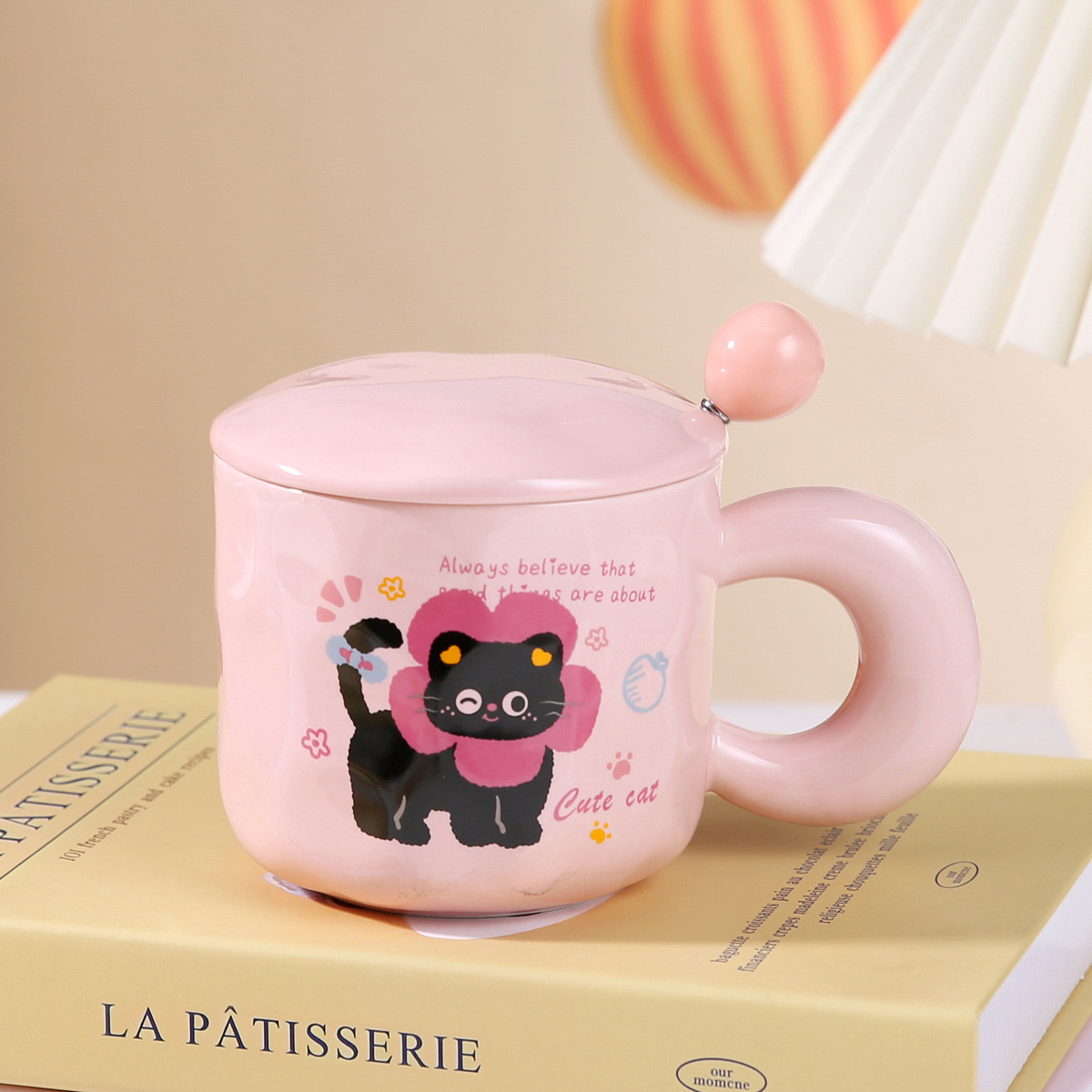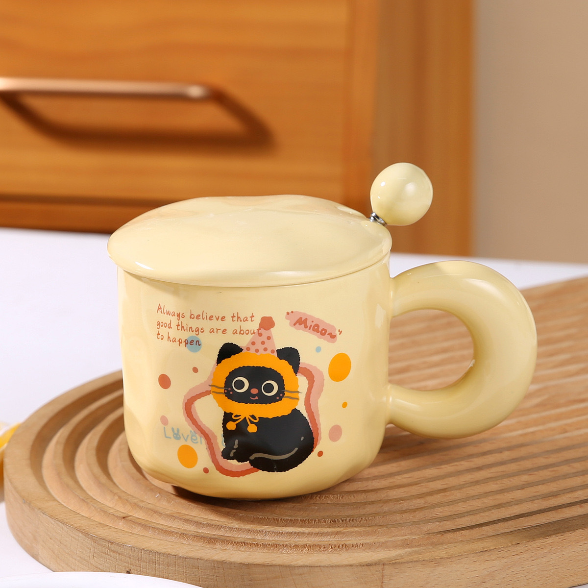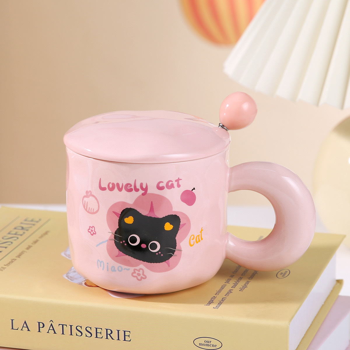 Color: Kitten yellow single cup, Cat Head yellow single cup, strawberry cat pink single cup, Christmas cat pink single cup, kitten pink with cover spoon, cat head pink with cover spoon, strawberry cat yellow with cover spoon, Christmas cat yellow with cover spoon