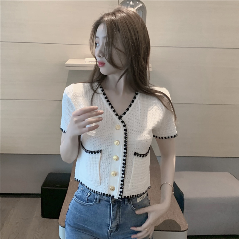 Product Informationpattern: plainColors: White, BlackIngredient content: 51% (inclusive)-70% (inclusive)Collar type: V-neckpattern: plainsleeve length: short sleeveLength: short Size Information: S M L XL