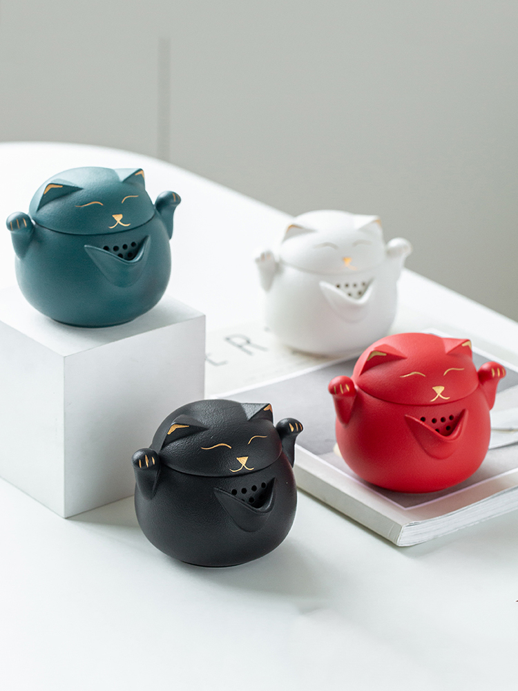 Color Classification: Lucky Cat Kuai Ke Cup (Red Sand Glaze) With Storage Bag Lucky Cat Kuai Ke Cup (Dai Green Glaze) With Storage Bag Lucky Cat Kuai Ke Cup (White Sand Glaze) With Storage Bag Lucky Cat Kuai Ke Cup ( Black sand glaze) with storage bag