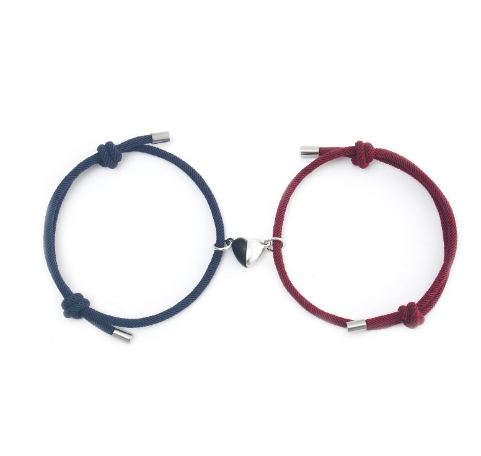 Simple Black And White Heart-shaped Magnetic Buckle Woven Bracelet
