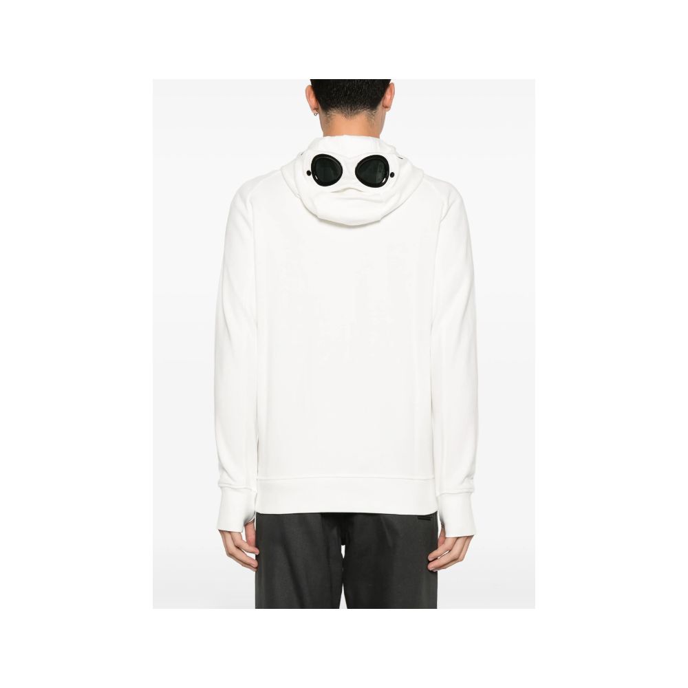 c.p. Company sweatshirt 100% cotton, white, with hood featuring its iconic goggles, regular fit and side pockets with zip.