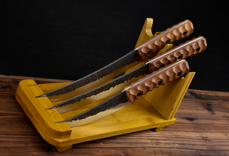 Blade material: 5Cr15Mov (5 chromium 15 molybdenum vanadium steel) Handle material: rosewood