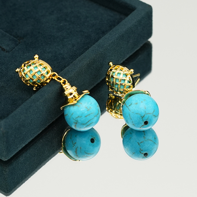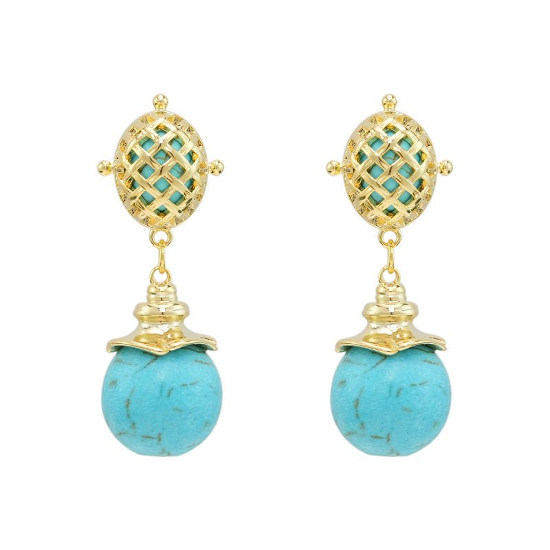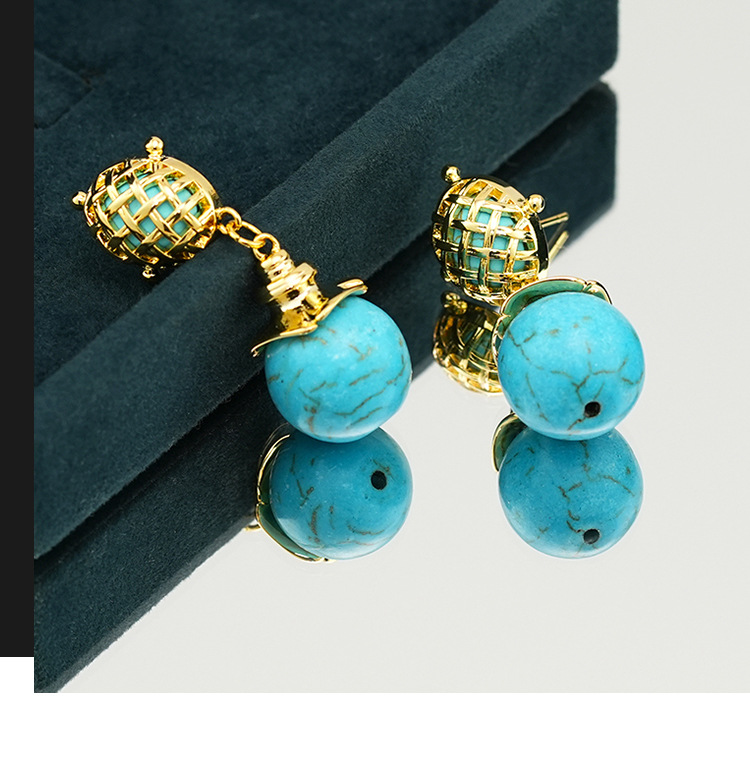 Product information:Treatment Process: Electroplating Color: turquoise long drop earrings Applicable people: women Material: Copper Purity: 18K Shape: Geometric Popular elements: round Style: ethnic style