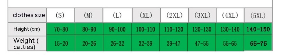 Size: XL (100-110cm, kg-19.50kg,2XL (110-120cm, kg-23.50kg,3XL (120-130cm, kg-27.50kg,4XL (130-140cm,27.50-32.50, 5XL (140-150cm, 32.50-37.50